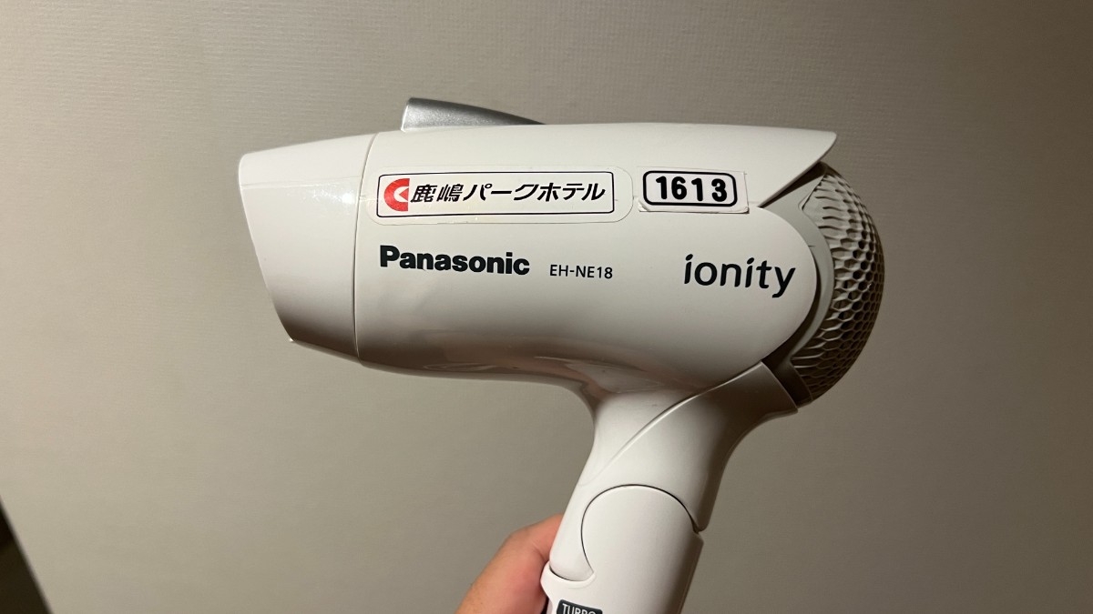 ドライヤーはオープンクローゼットにかけてあります。型番はパナソニックイオニティ EH-NE18。