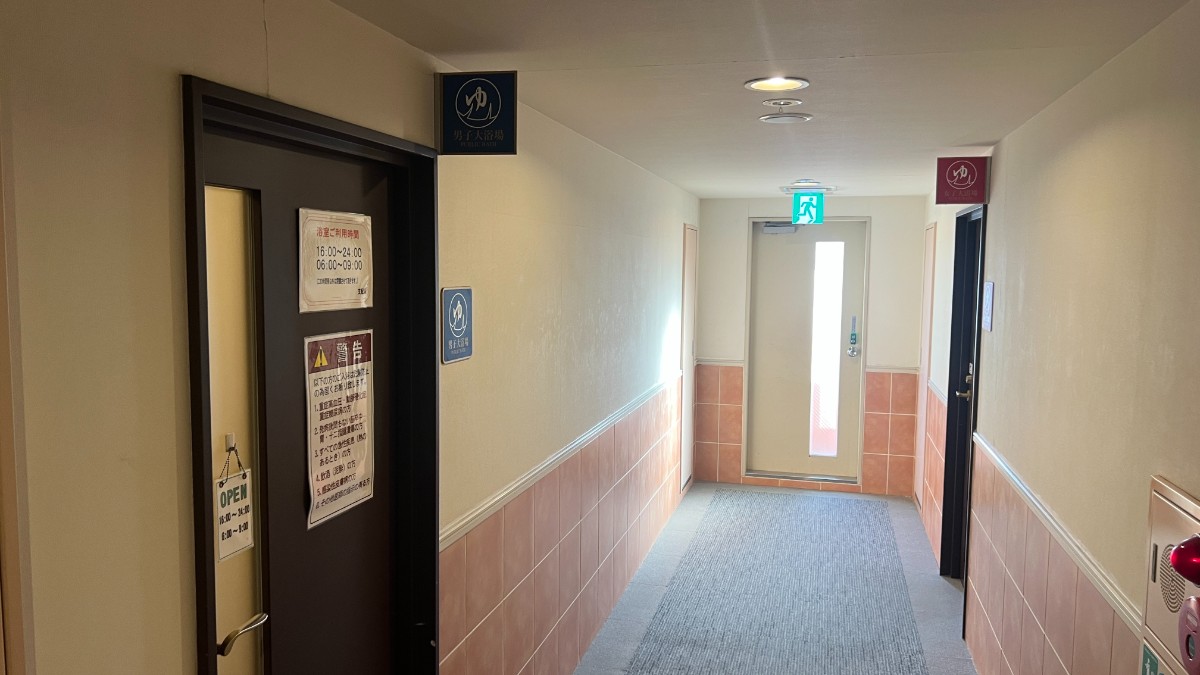 大浴場は西館の2階にあります。大浴場は男湯・女湯両方あります。(時間制とかもなし)