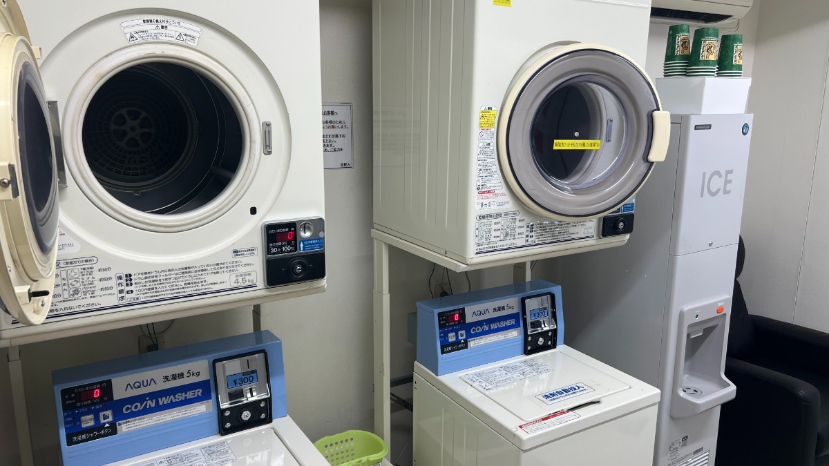料金は洗濯機が1回300円、乾燥機は30分100円です。