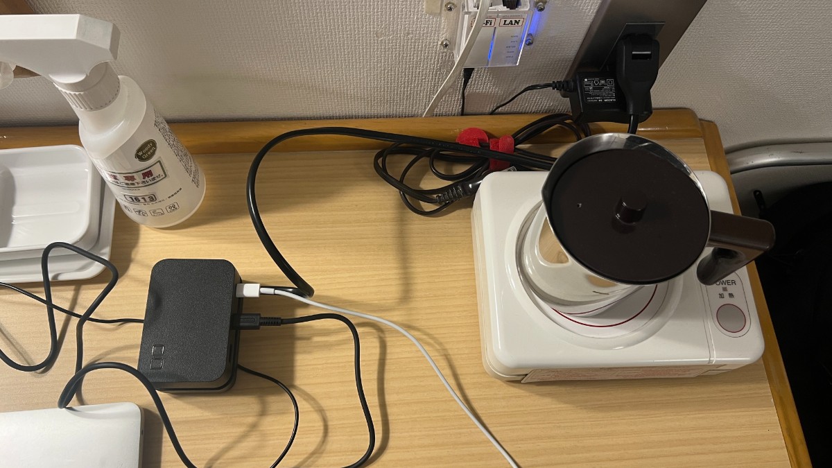 ケトルをどかせばいいんですが、手間だったため、今回は上部のコンセントを利用しました。