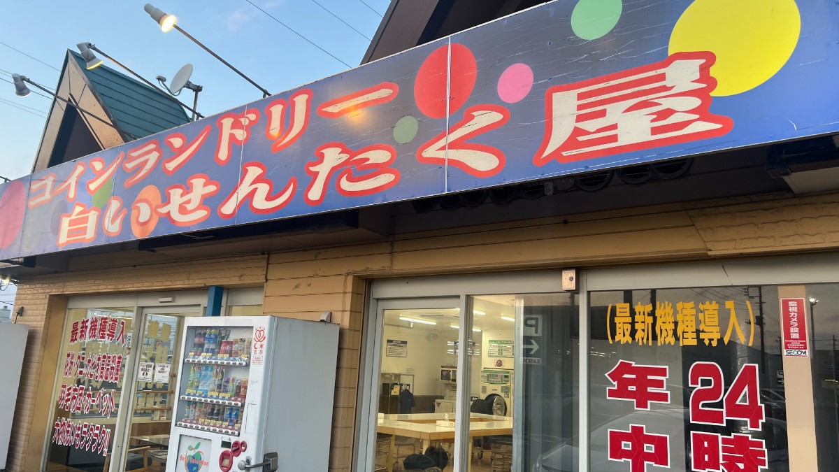 ホテル目の前、あるいて2分程度の場所に24時間営業のコインランドリーがあります。