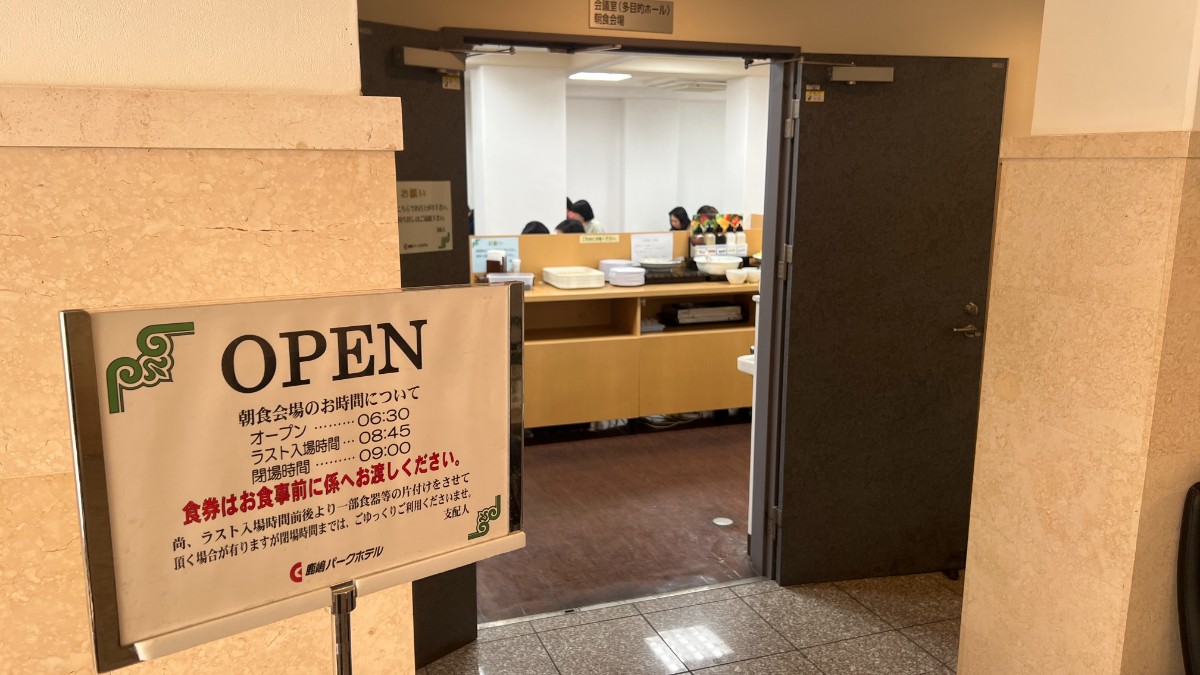 朝食は和洋ビュッフェです。時間は6:30〜8:45です。