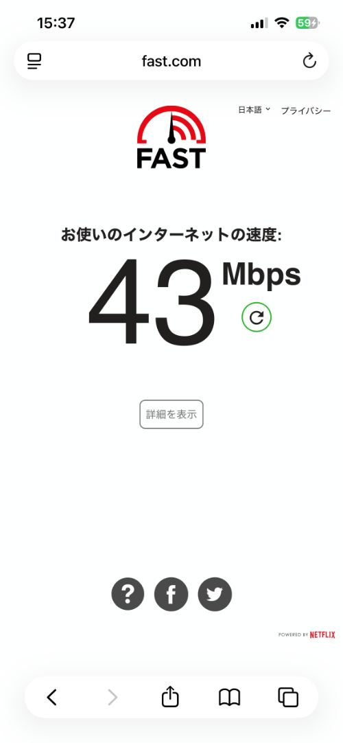 wi-fi速度43Mbps前後