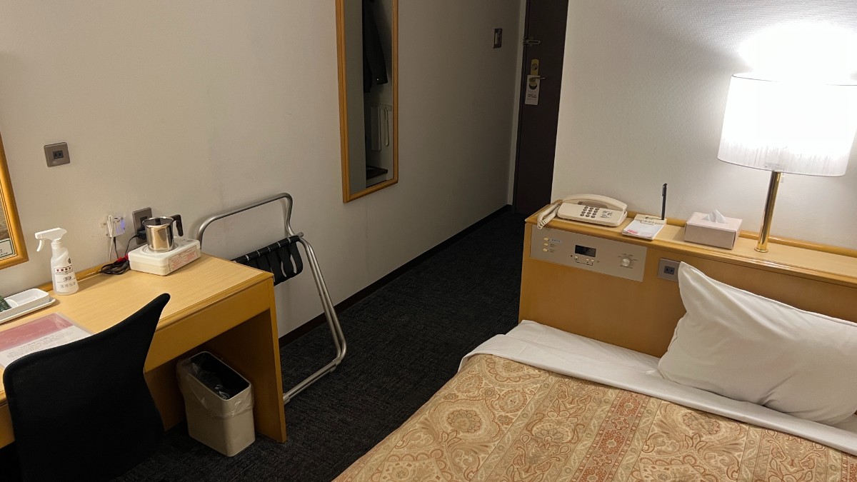 ホテル設備はやや古さは感じるものの、シングルルームの部屋でも広々してて、荷物の置き場所お確保されているため快適に過ごせます。