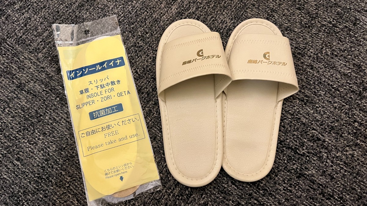 スリッパは備え付けでした。使用感があります。が、使い捨ての紙製の中敷もセットでした。