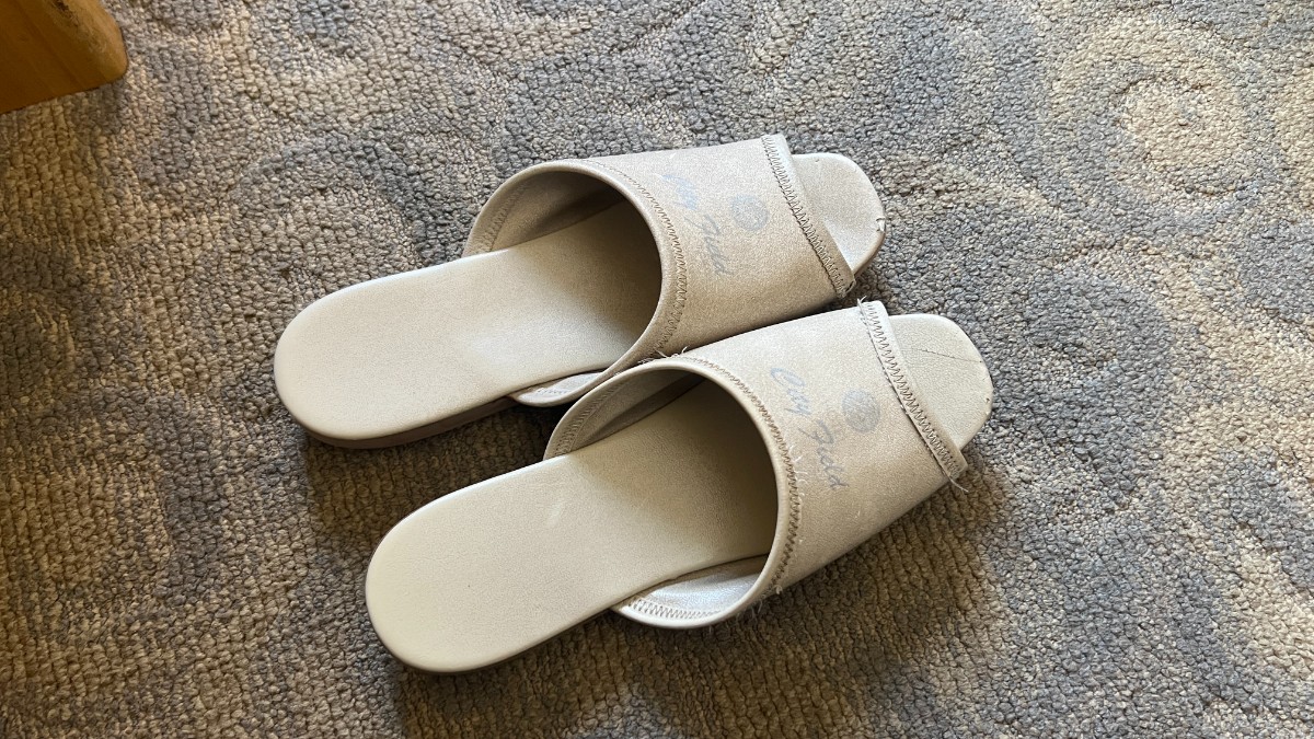 館内スリッパは備え付けのスリッパです。衛生的には問題ないと思うものの、使用感は感じられます。