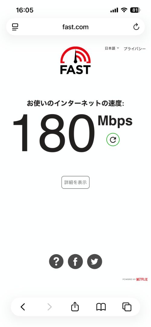 - 部屋にルーターが置かれており、wi-fiは180Mbps前後で爆速!