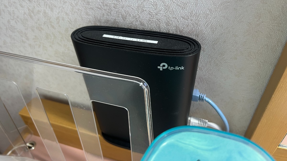 古い設備のホテルだとネット回線が遅い時がありますが、シティーフィールドかごはらは部屋内にTP-Linkのルーターが設置されていました。