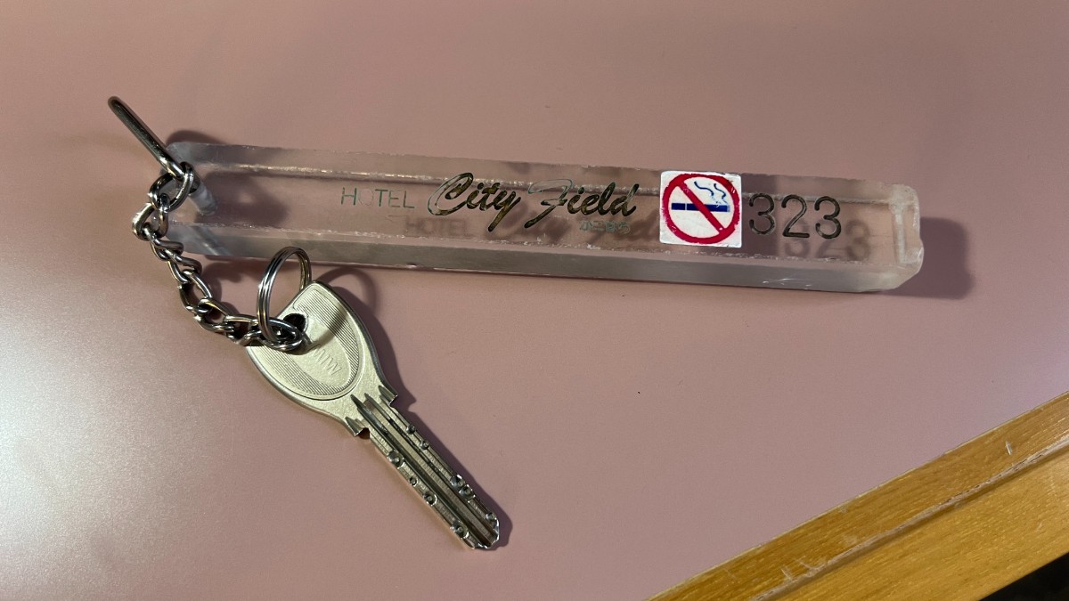 鍵はシリンダーキーで、外出時はフロントに預けて外出する必要があります。