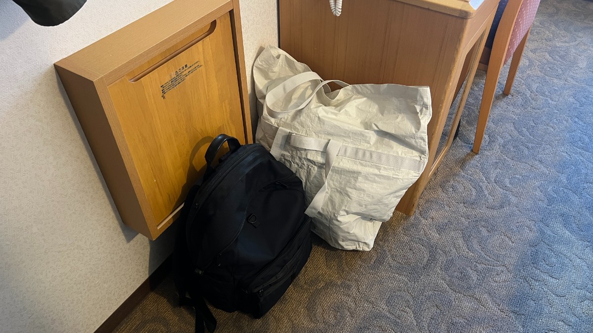 荷物をスペースは少なめです。荷物は机の横、またはベット後方に置くことになります。