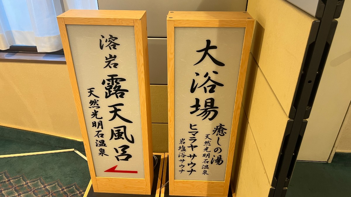 ホテルから歩いて20分、国道17号沿いに「お風呂カフェハレニワの湯」があります。