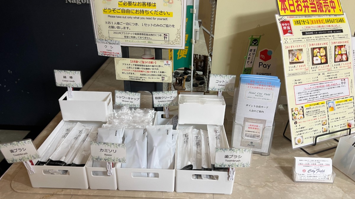 アメニティはフロントの横にあります。歯ブラシはアメニティから持っていきます。