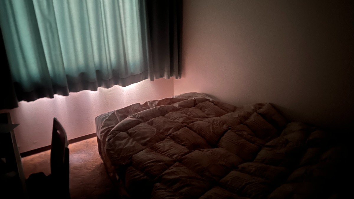 窓付近は光は透けてますが、ベット奥までは届いていません。