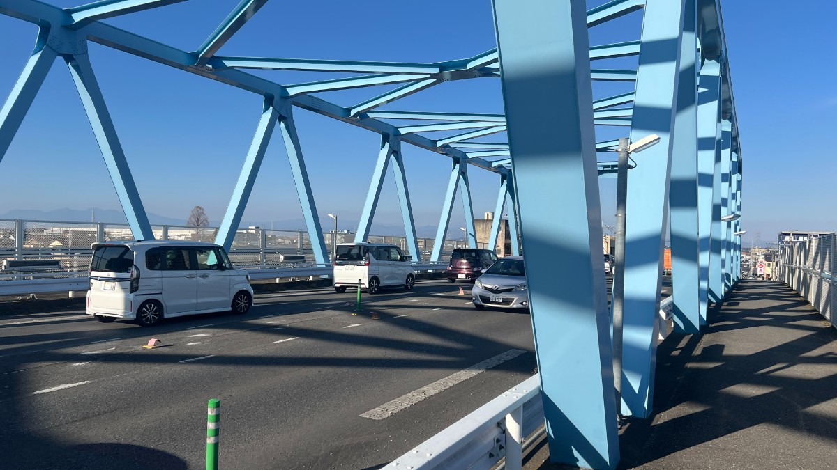 この鉄橋は国道17号にもつながっているためか混雑していました。時間に余裕を持った行動をおすすめします。