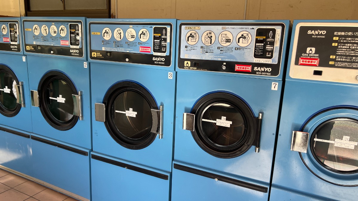 料金は洗濯機が1回200円、乾燥機は30分100円です。