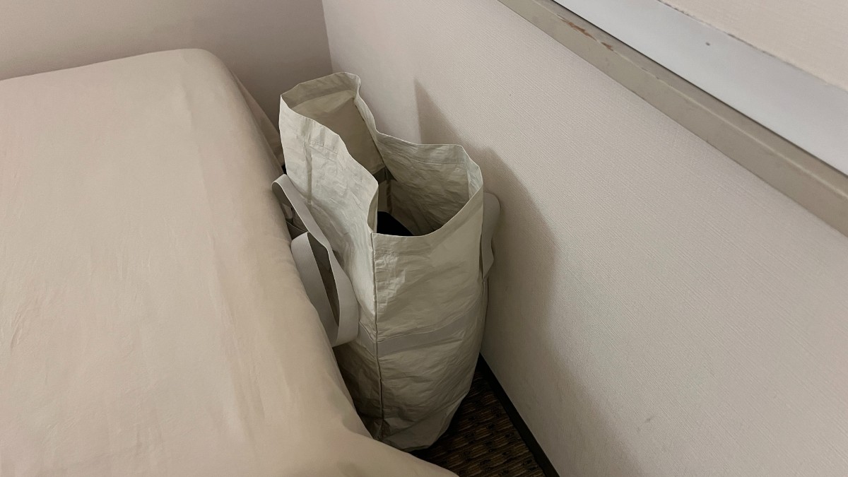 ベッド奥のエリアにもバックやキャリーケース類を置くことができます。