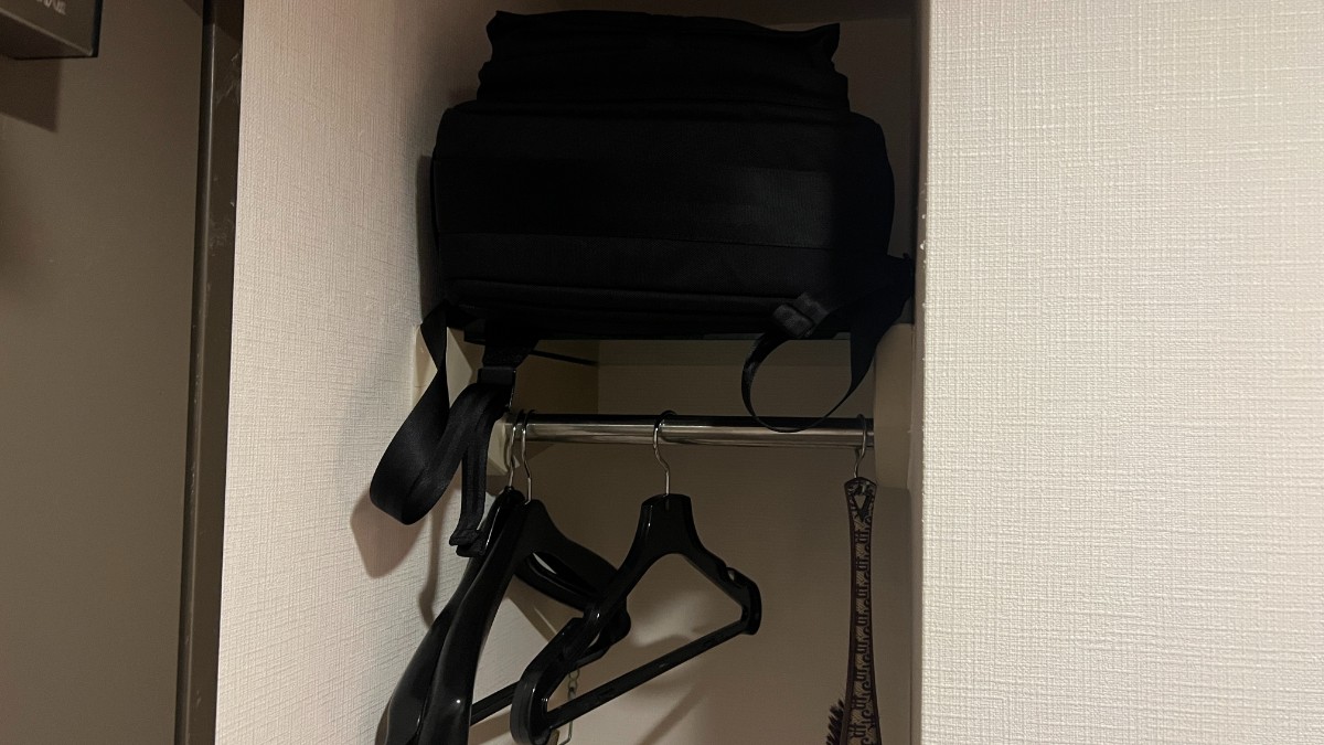 オープンクローゼットには天板もあるのでカバンも置けました。