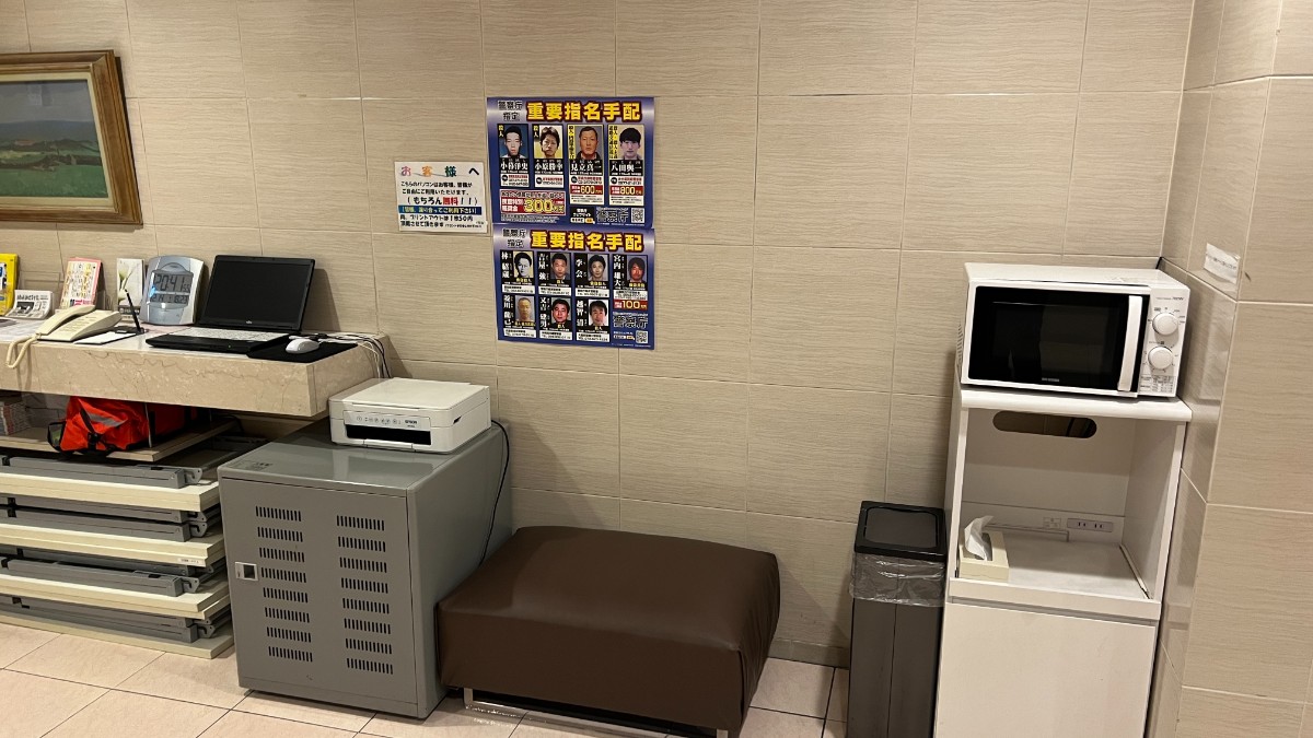 ロビーにはパソコンとプリンタ、電子レンジがあります。