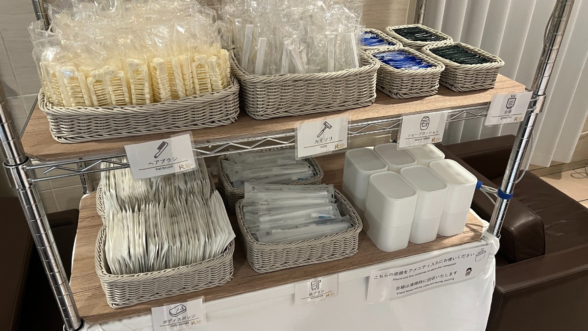 アメニティは受付の横にあります。歯ブラシはアメニティから持っていきます。