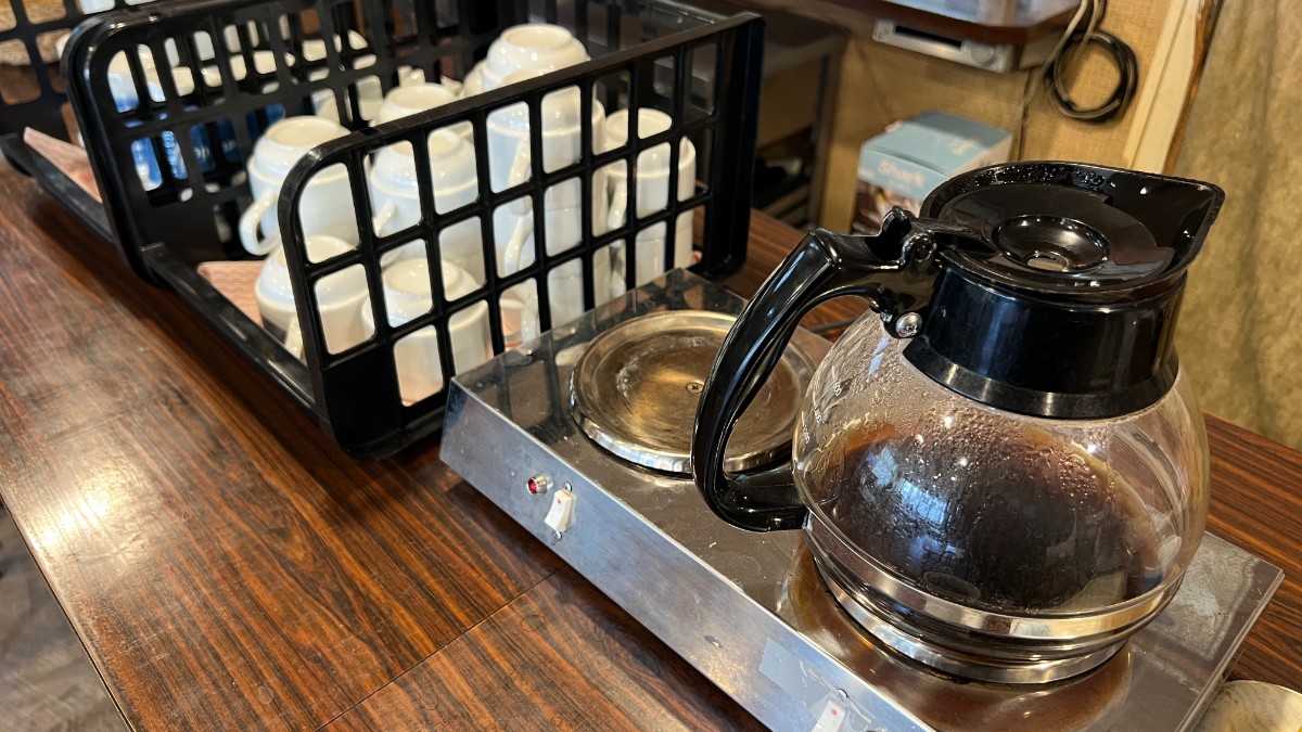 ドリンクはセルフです。コーヒー、お茶、野菜ジュースがありました。