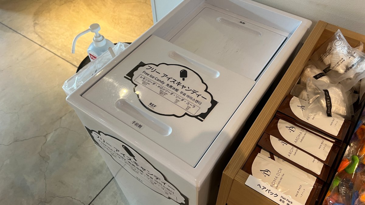 ちなみに、アメニティ横にはアイスキャンディーがあります。お風呂上がりに食べると美味しいです。