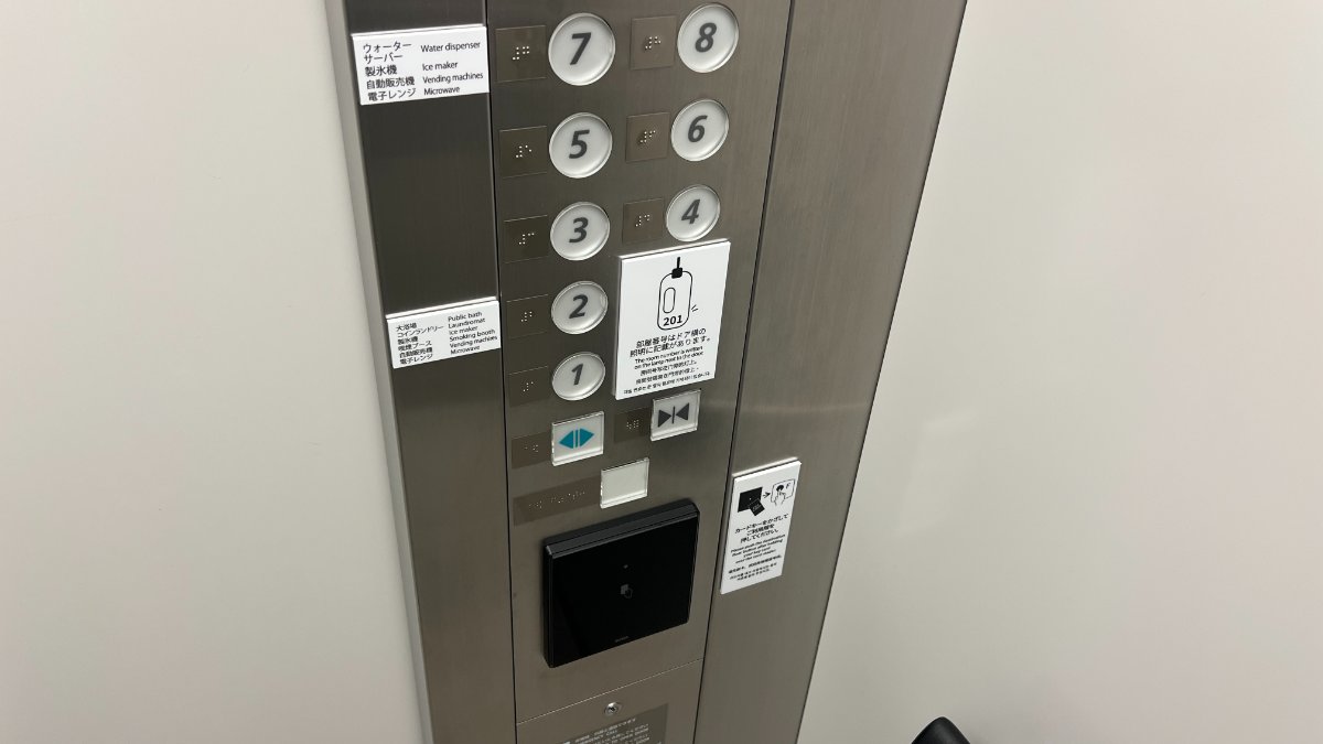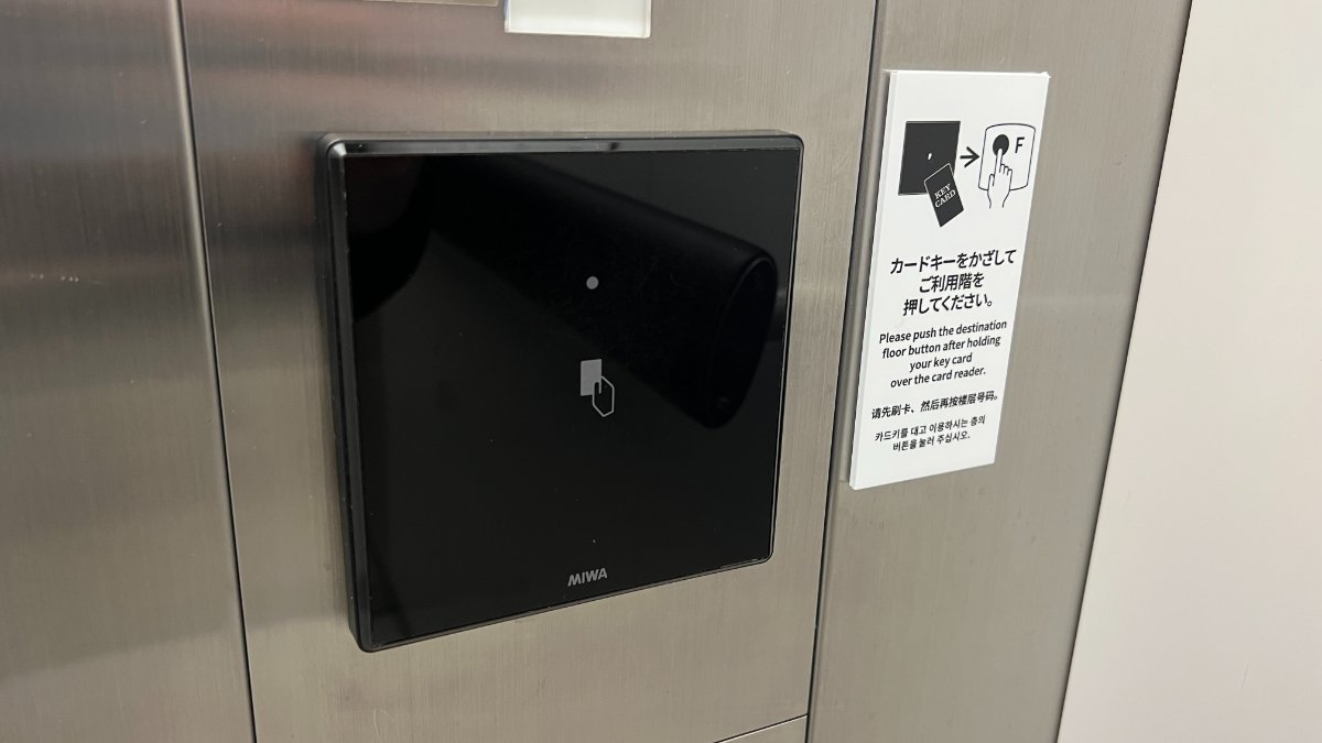 宿泊階(3階以上)にいくには、エスカレーター内でカードキーをタッチしないとボタンが押せません。