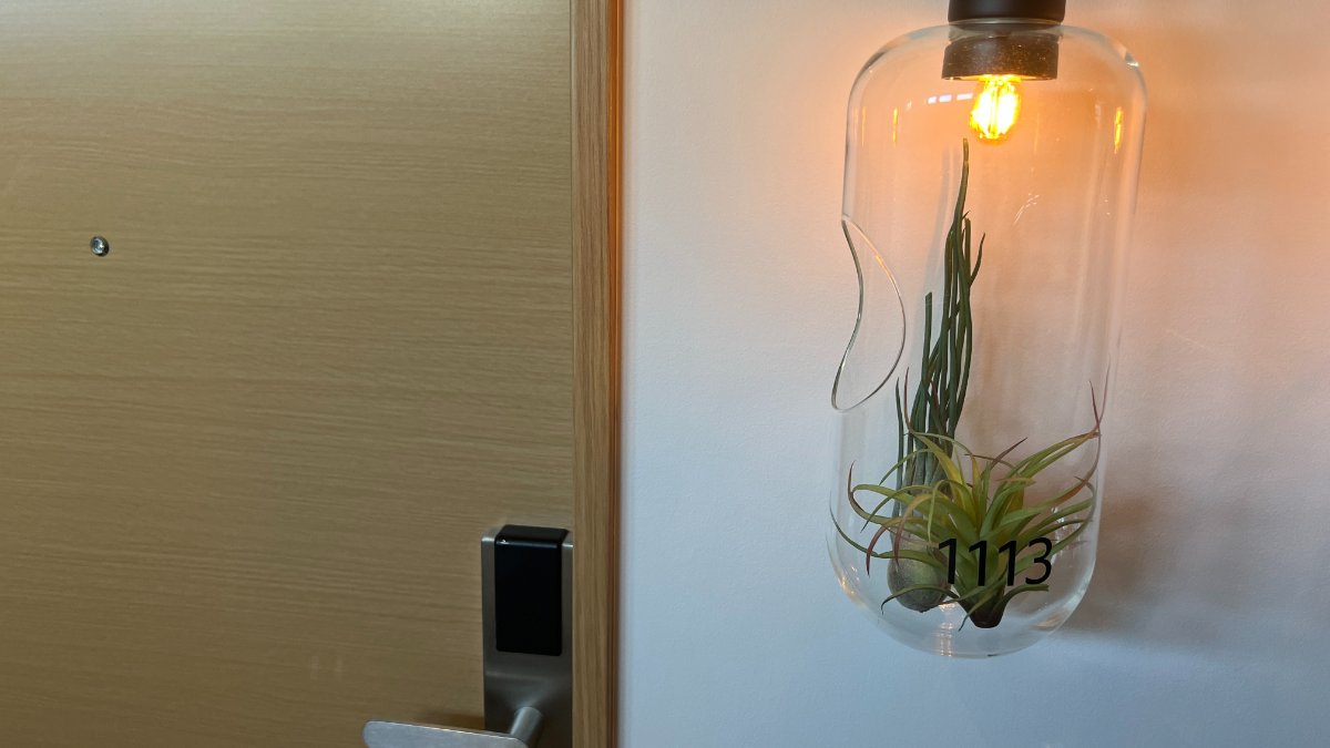 ルームナンバーはガラスの植木鉢に書いてあります。デザイン性が高いです。