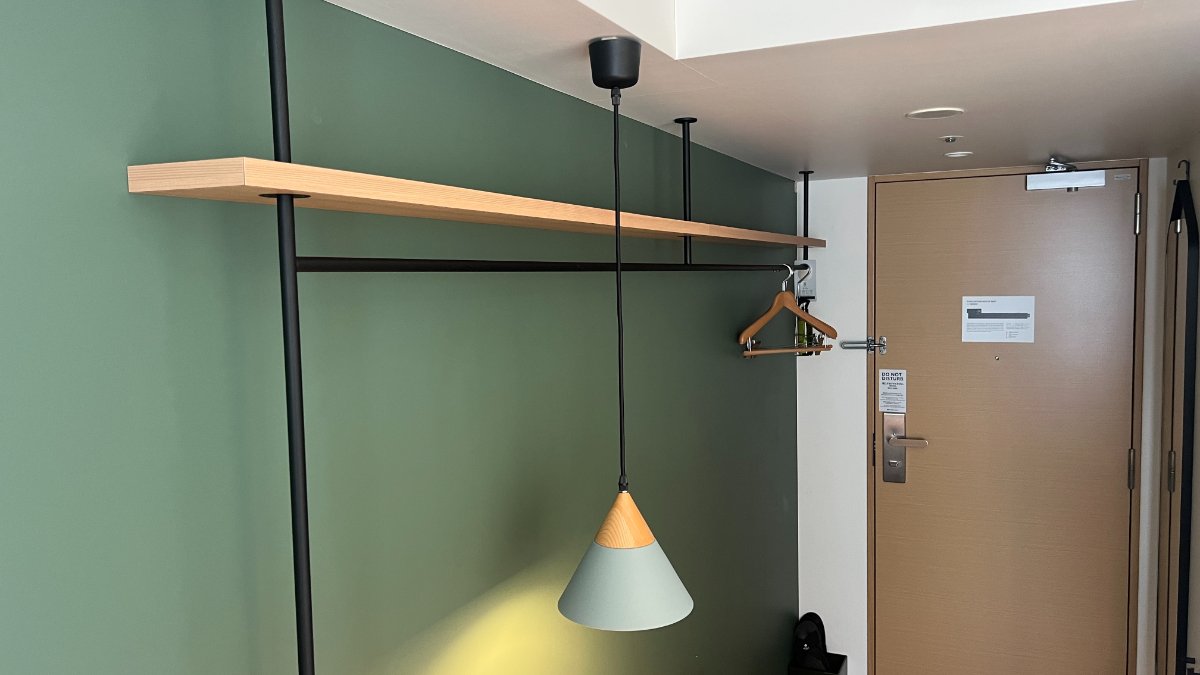 ハンガーの上にも棚があるのでちょっとした荷物ならここに置くことができます。