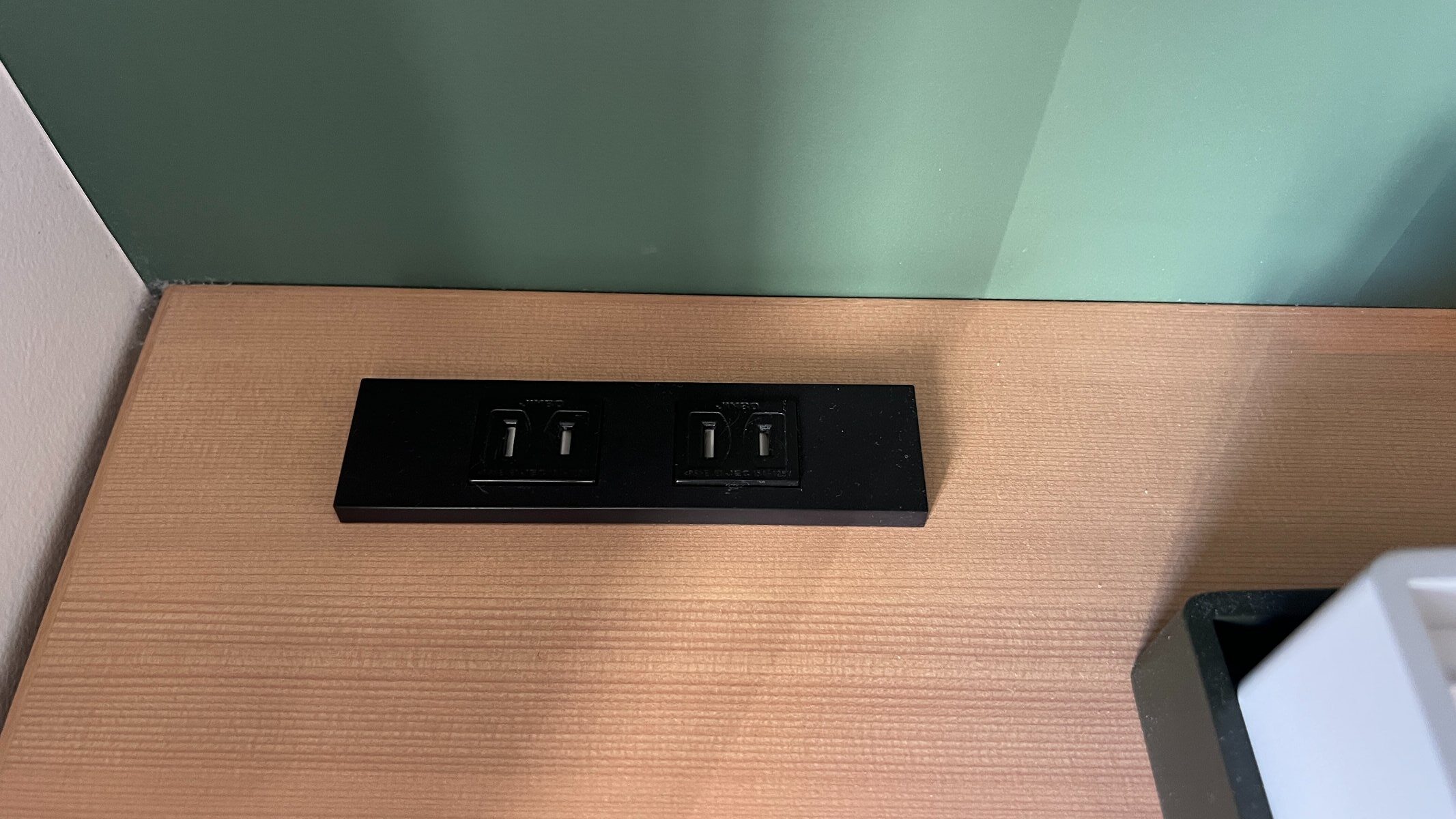 コンセント場所デスク 4口(ワーキング用デスクそばに2つ、奥に2口)
