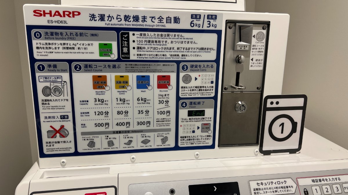 3kgの洗濯量で洗濯・乾燥で500円(120分)。洗剤の持参は不要。