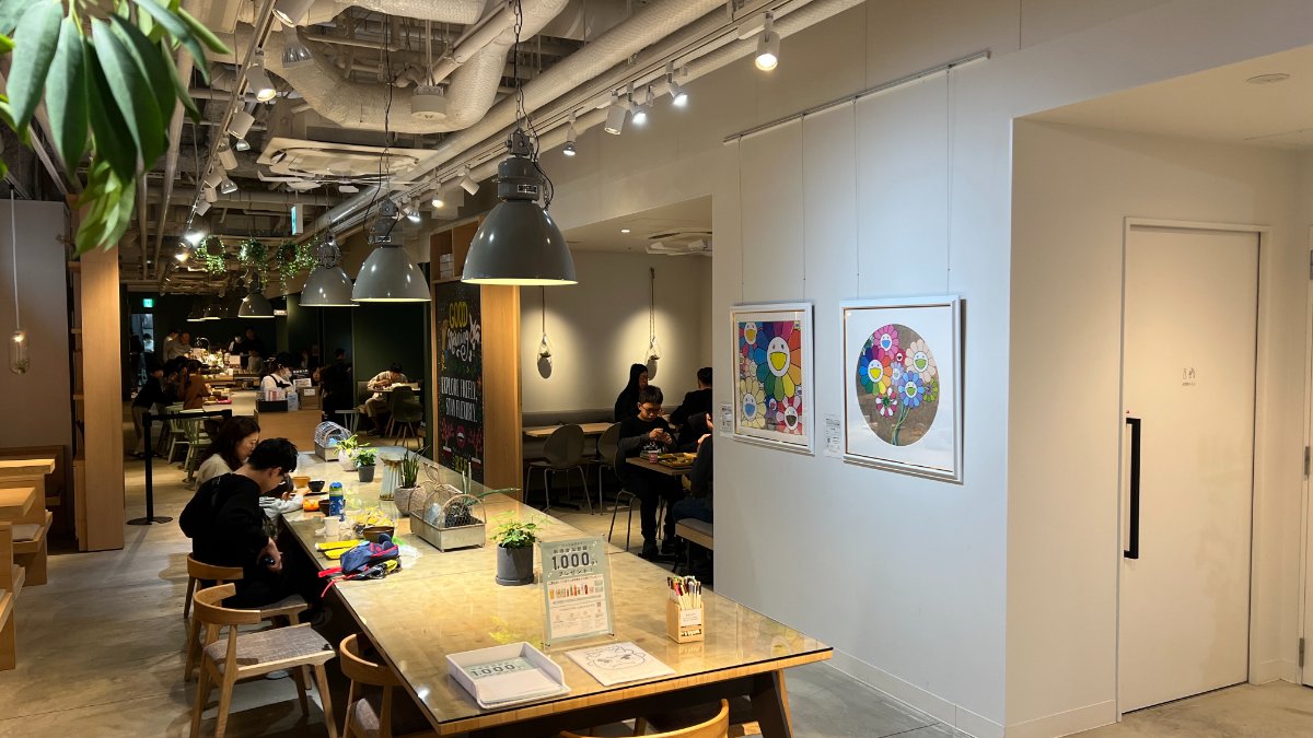 フロント奥は朝食会場です。朝食以外の時間はコワーキングスペースとなっています。